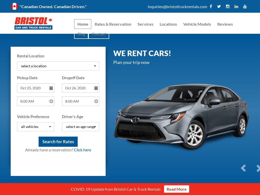 Web Bristol Car and Truck Rentals rental car fleet includes - Cars Minivans and SUVs and Moving Trucks. Richmond Hills widest car and truck rental fleet. Rental offices are located in Brampton Milton Orangeville Barrie Bolton Richmond Hill.